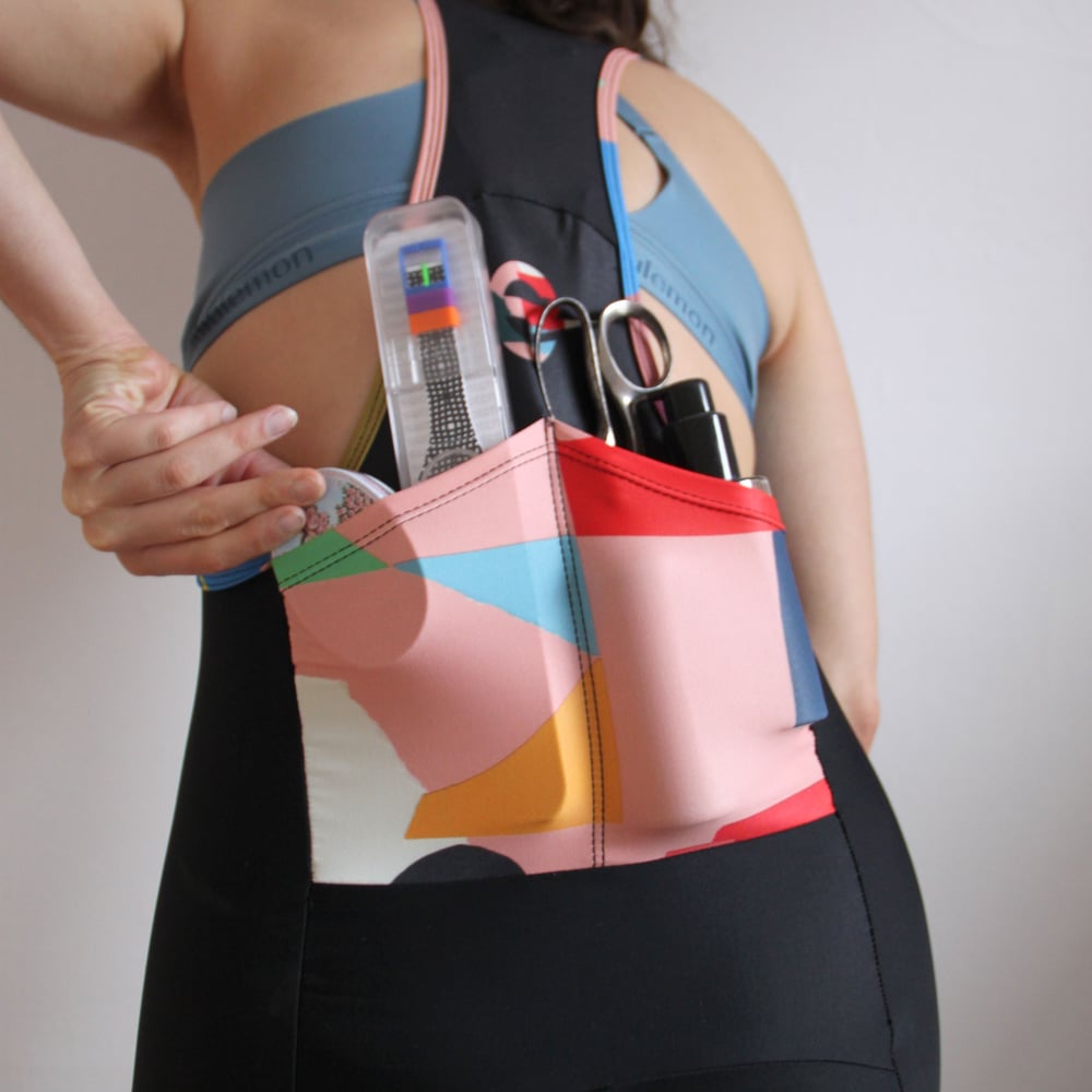 We started taking our jerseys off in the summer on hot days and found that all the snacks, phones, tools and wallets had nowhere to go. Walton cut up an old leg warmer one day and stitched a pocket to his bib shorts, and immediately they became his go-to bibs. Heading out on a ride wearing only a base layer or just a loose t-shirt was so freeing, that we began to develop a product with Endo Customs in LA based on Walton's customized racing bib shorts.